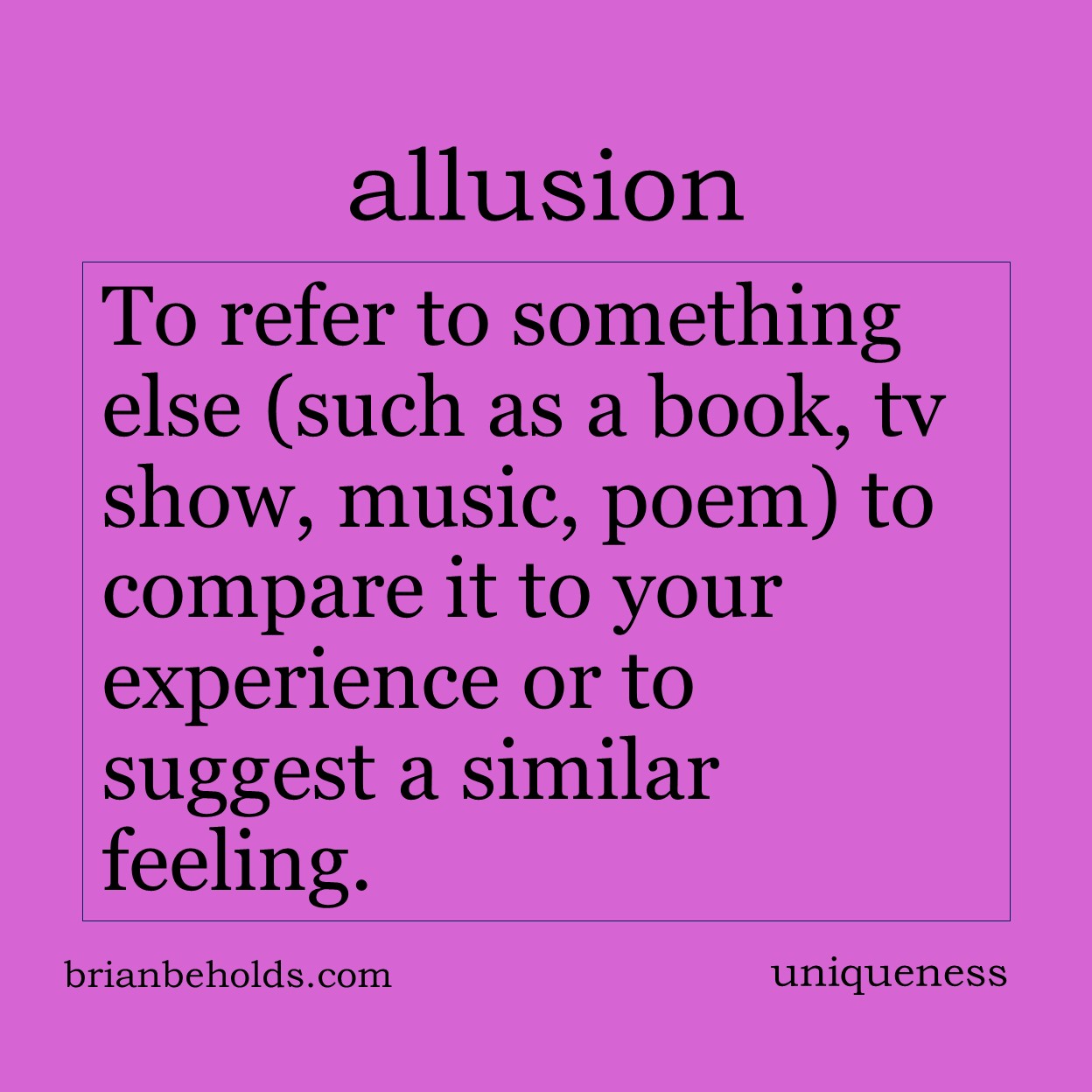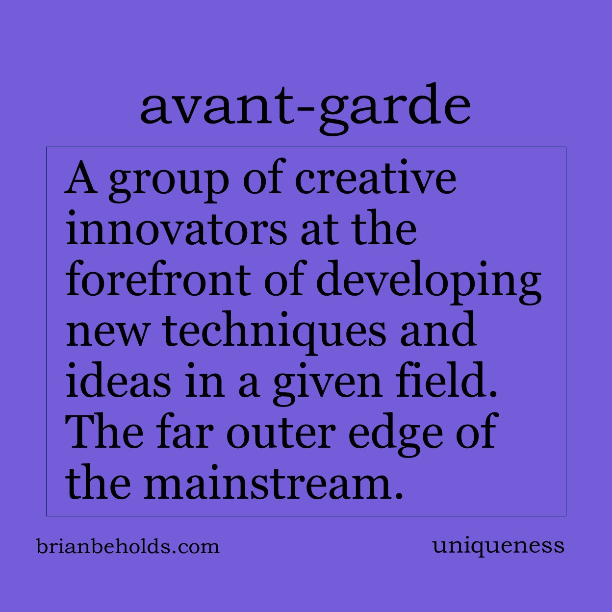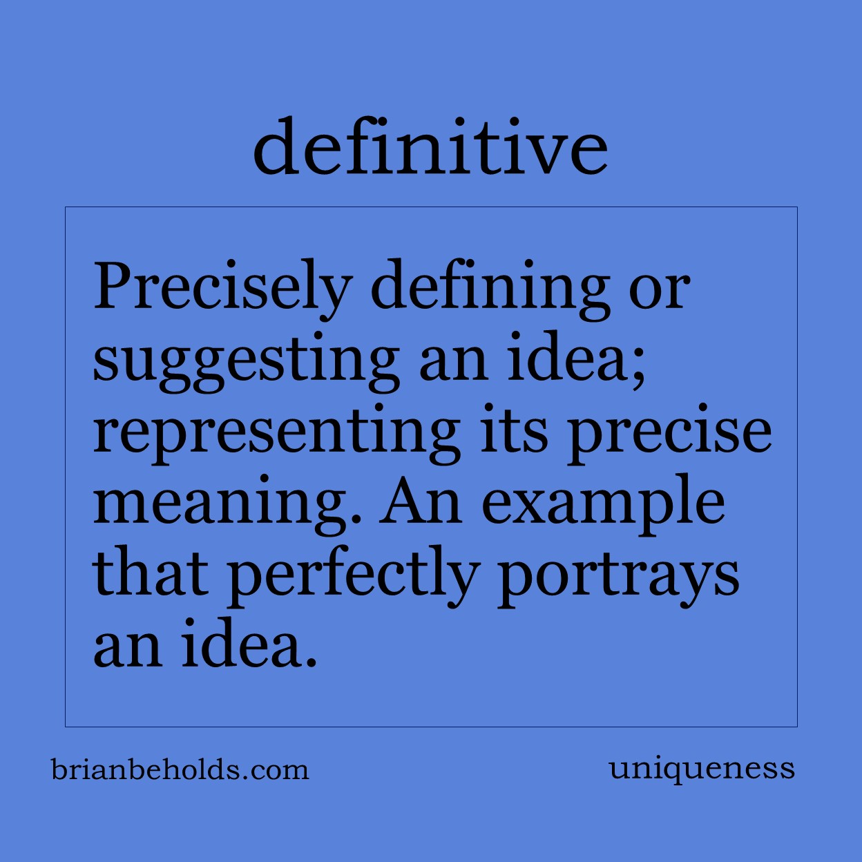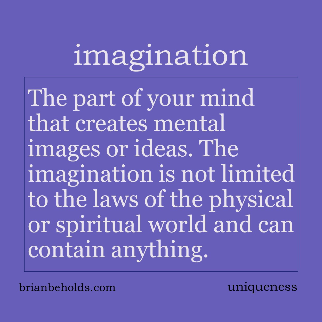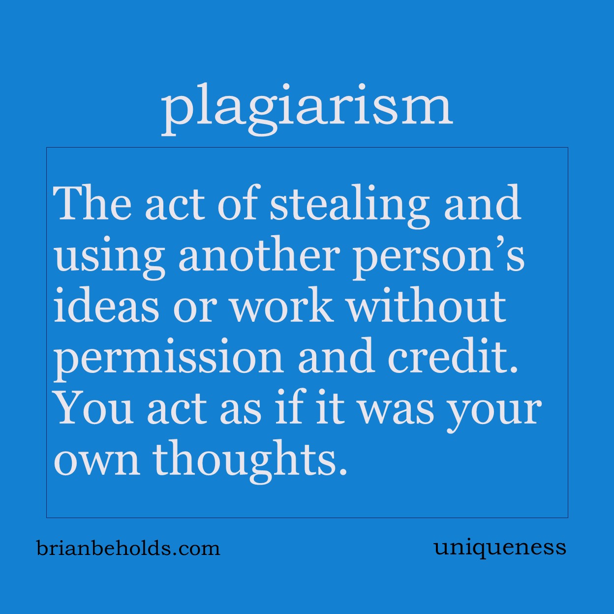 Uniqueness suggests an original, one of a kind, with no equivalence. It is the goal of style and tone and is the child of genius and the imagination. Big ideas Your biggest weakness is the key to your success. A consistent difference defines style. Everything is made up of component parts from other sources. Protect […]